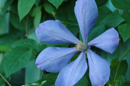 スッキリした丸弁、青味を帯びた明るい紫色。