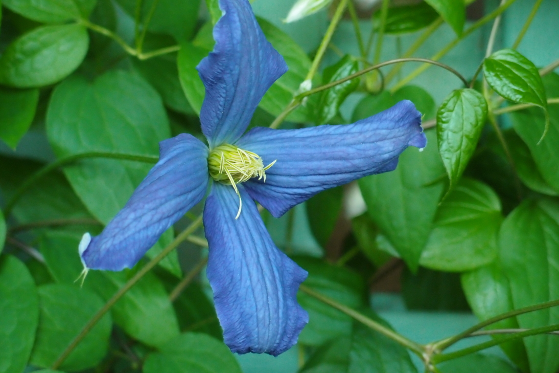 余裕で2m伸びます。艶やかな茄子紺色の花は節々に咲くのではなく