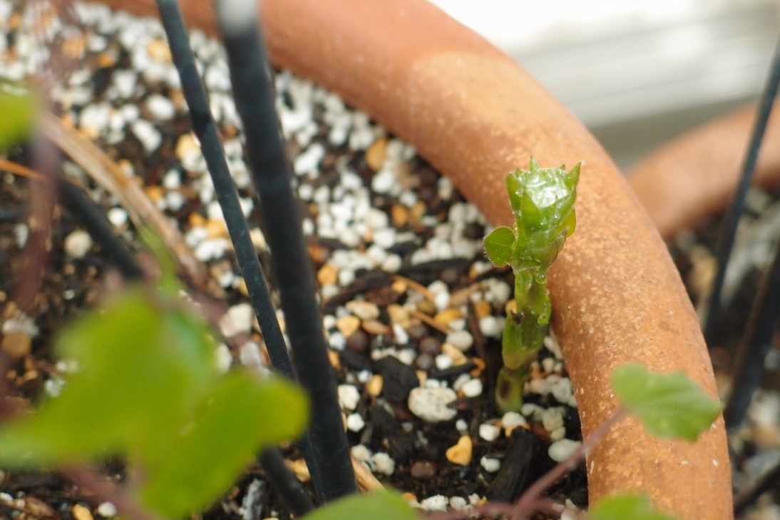 例年、春先の芽出しが早い我が家のベランダガーデンとしては