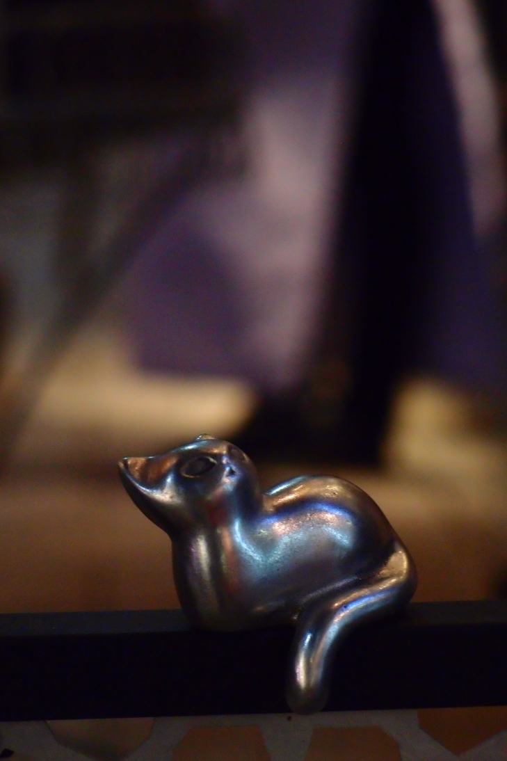 通りに設置されたギャラリーの案内スタンドに可愛い猫ちゃんが座っているのを発見♪
