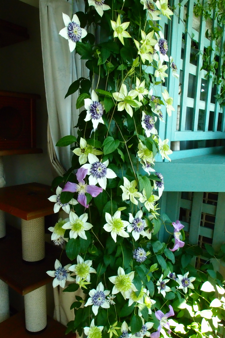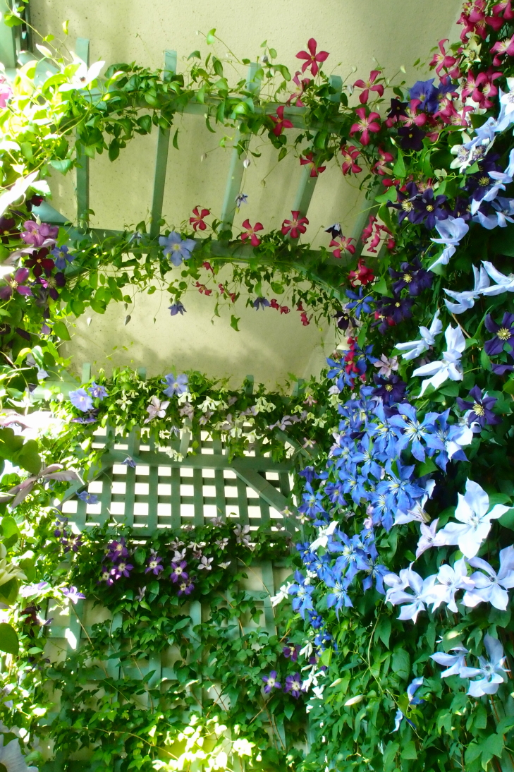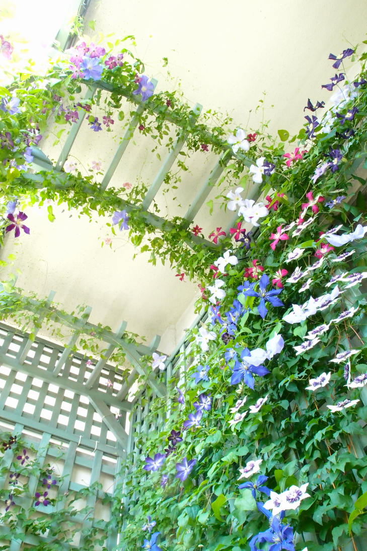 いつもならもっと色々な品種が重なり合ってクレマカーテンと表現するのですが