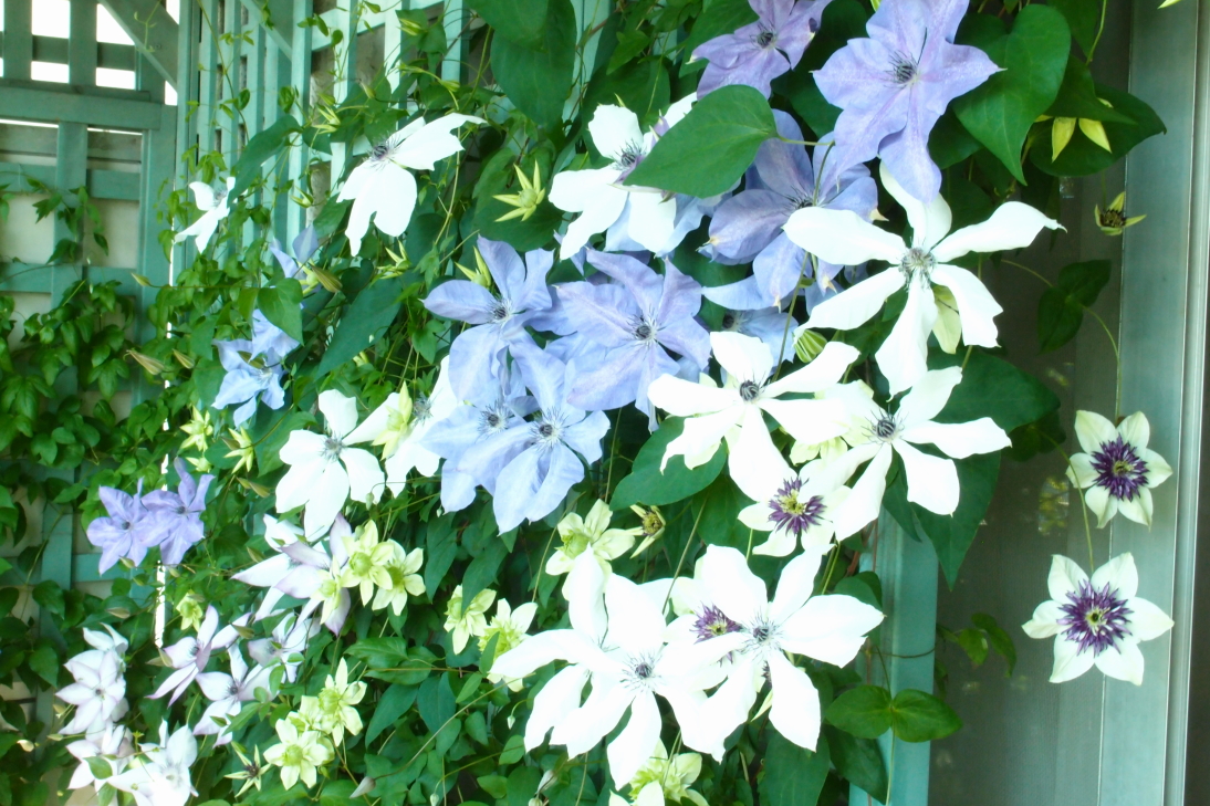 あれよあれよという間にクレマチスの蔓はパーゴラを駆け上り