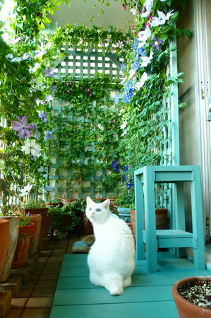 2009年6月、自宅近くのホームセンター駐車場で保護(推定5ヶ月)。先天性の重度の難聴と思われますが、日常生活にはまったく問題無く毎日元気に走り回っています。真っ白な体に青い瞳でとても美しい猫ですが、女の子とは思えない暴れん坊将軍w