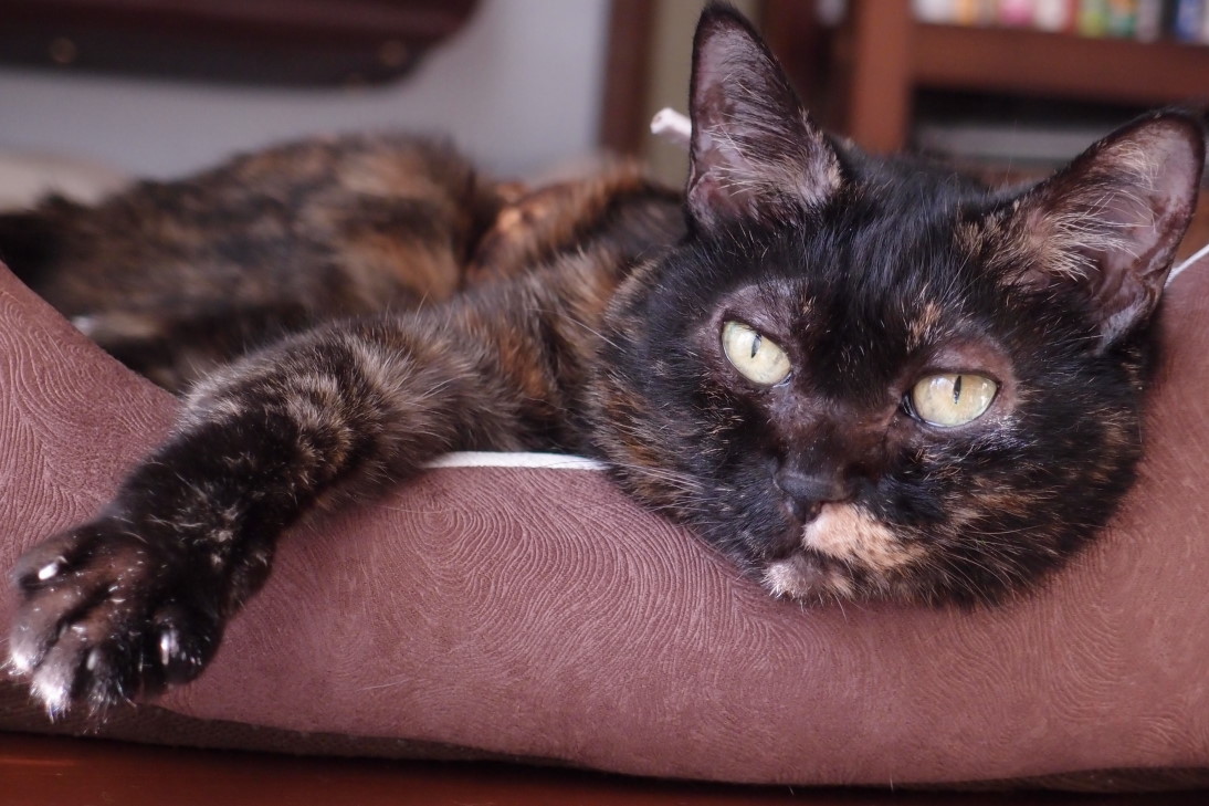1999年5月、当時の職場近くの路上で弱っているところを保護(推定生後1ヶ月)。我が家のファーストキャットとなりました。本当はもっと甘えたいのに素直になれないツンデレ・クールなしめたんです。2012年に乳腺腫瘍摘出手術を受けました。2016年に再発し再手術。